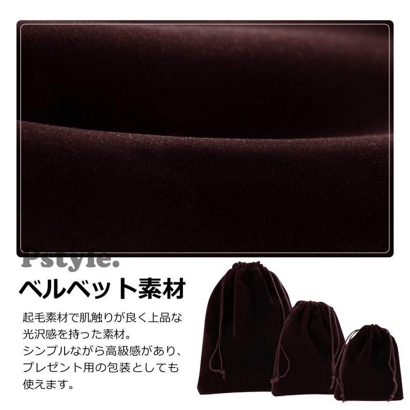 Pstyle Drawstring Bag Accessory Pouch Set, 9 Pieces, Small, Medium, Large PST-017 (Brown)
