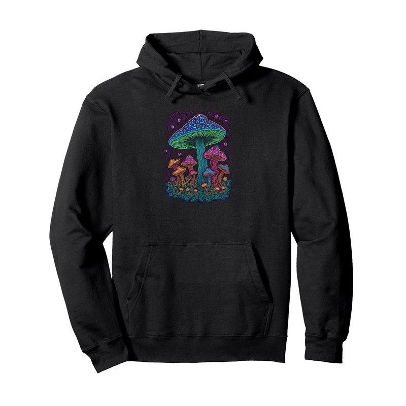 Psychedelic Glowing Mushroom Art | Blacklight Forest Fungi Pullover Hoodie