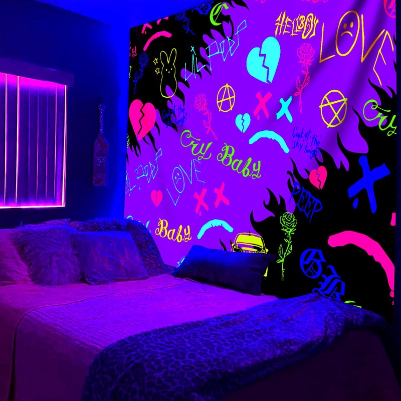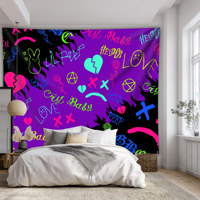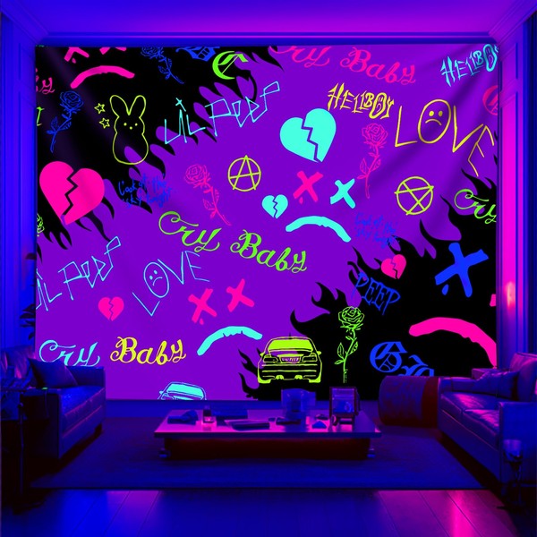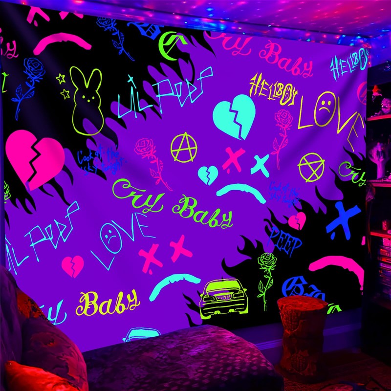 PSYHILAR Lil Peep Tapestry Blacklight, Rapper UV Flag Black Light Poster for Bedroom (60 x 50 Inches)