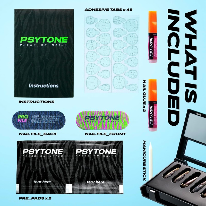 PSYTONE Press On Nails Long Coffin Fake Nails with Glue, 24Pcs Nail Kit-12 Si...