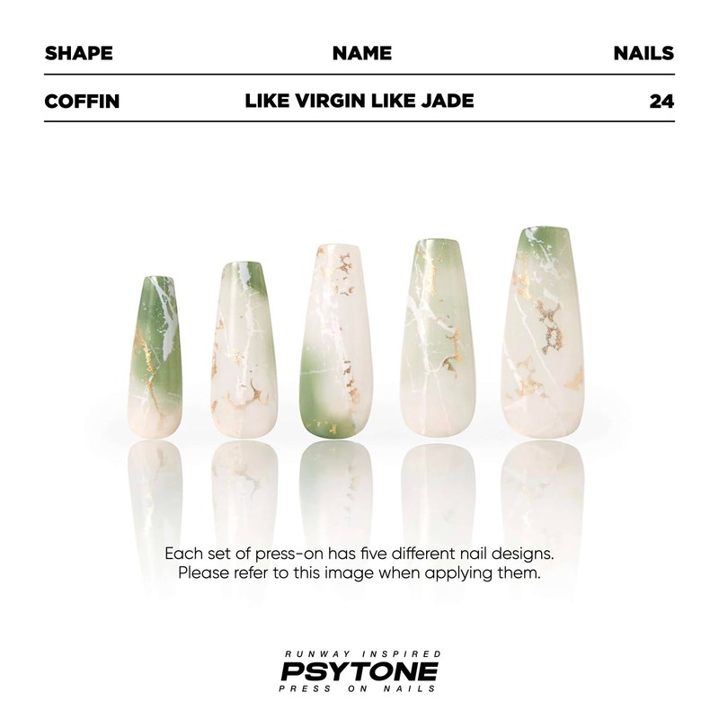 PSYTONE Press On Nails Long Coffin Fake Nails with Glue, 24Pcs Nail Kit-12 Sizes Runway Nails(Like Virgin Like Jade)