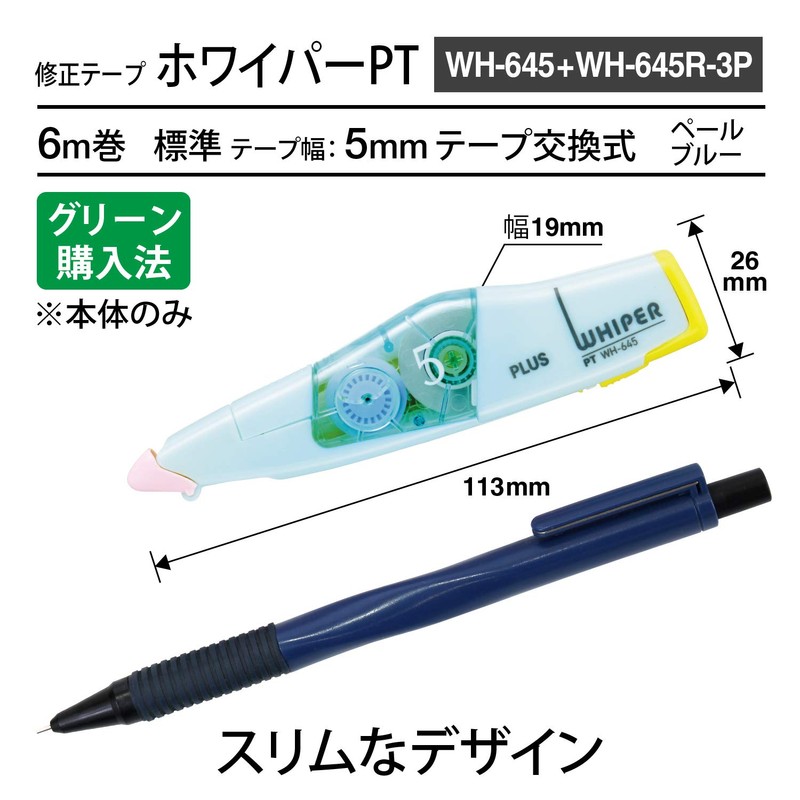 プラス 修正テープ ホワイパーPT 本体 5mm 1個 交換テープ 5mm 3個セット ペールブルー