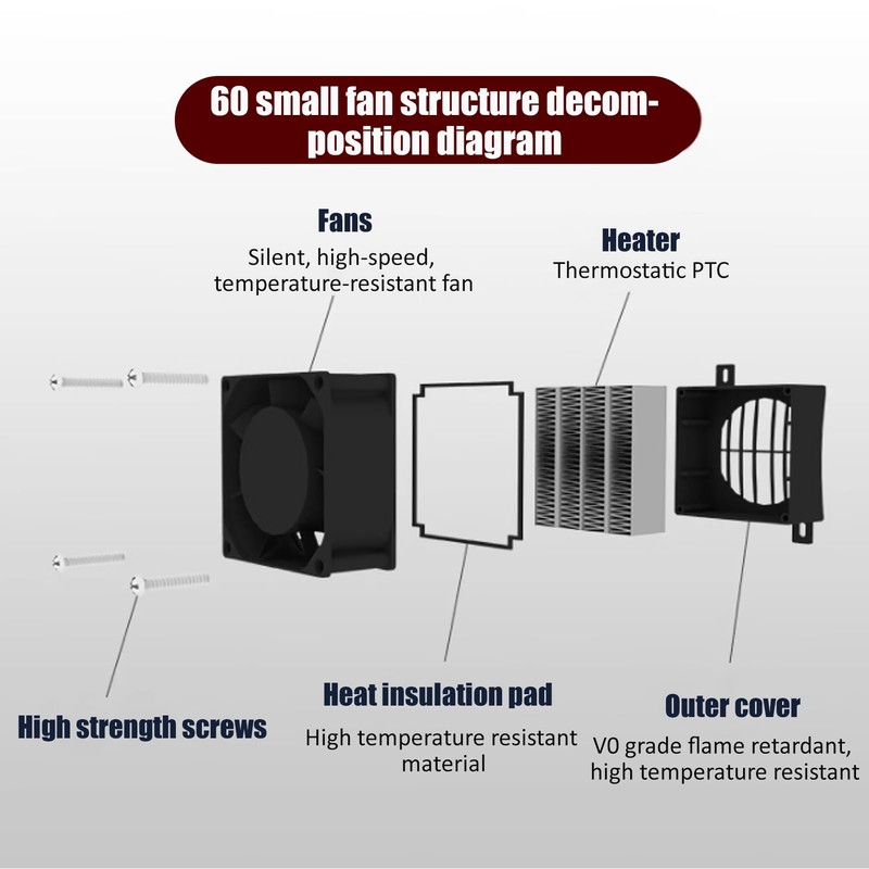 4. Fast and Efficient: The PTC air heater quickly converts electrical energy into heat after being powered on, and you can feel the hot air within 30S, fast and efficient.