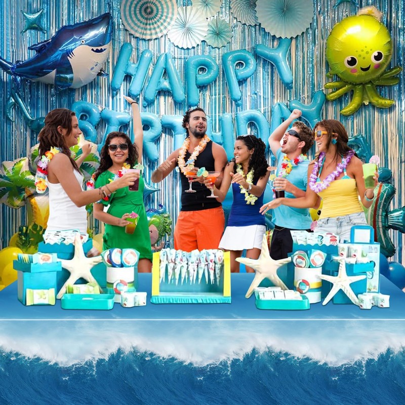 - Cool Ocean Birthday Decorations: Our ocean tablecloth is exquisitely designed with blue water wave pattern, just like being in the underwater world, adding a touch of classic and charm to your gatherings.