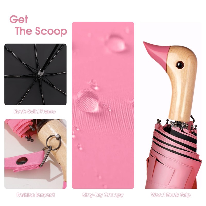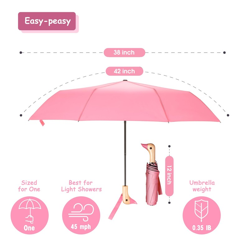 - Compact Duck Umbrella for Travel–Opens to 42 inches, folds down to 17 inches, and weighs just 0.9lbs—perfect for slipping into your bag