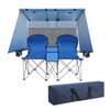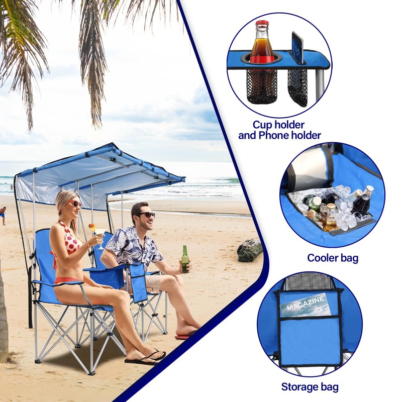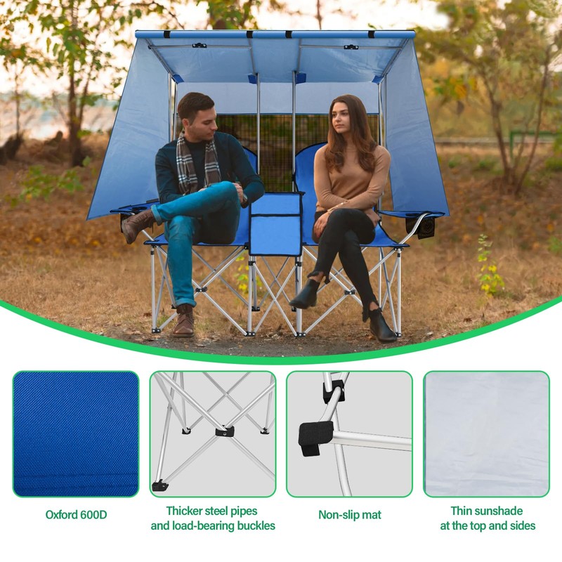 ptlsy Double Camping Chair with Canopy, Folding Two-Person Seat, Portable Outdoor Loveseat with Shade, Folding Chairs for Beach, Lawn, and Outdoor Activities (Blue)