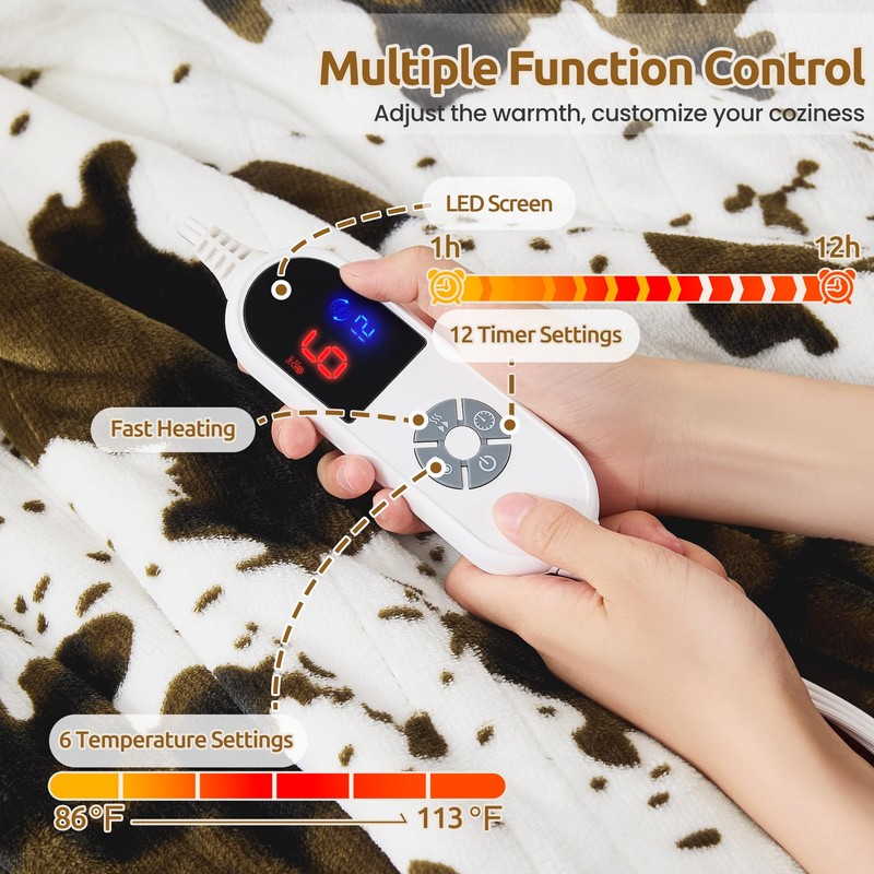 - Gentle Warmth, Just the Way You Like It: With 6 heat levels (86–113°F) and a 1–12 hour timer, this blanket warms up quickly and lets you create your perfect comfort zone for restful nights or quiet afternoons.