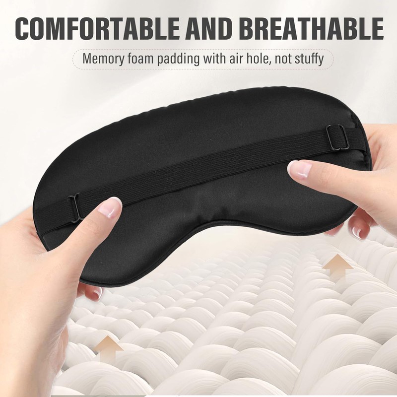 - fabric: 100% skin-friendly breathable material, ultra-light, ultra-soft and comfortable, gentle on the delicate skin around your eyes, helps block disturbing light and noise, and allows you to sleep peacefully. Colored with environmentally friendly dyes, does not contain harmful chemicals, and is not easy to fade after washing.