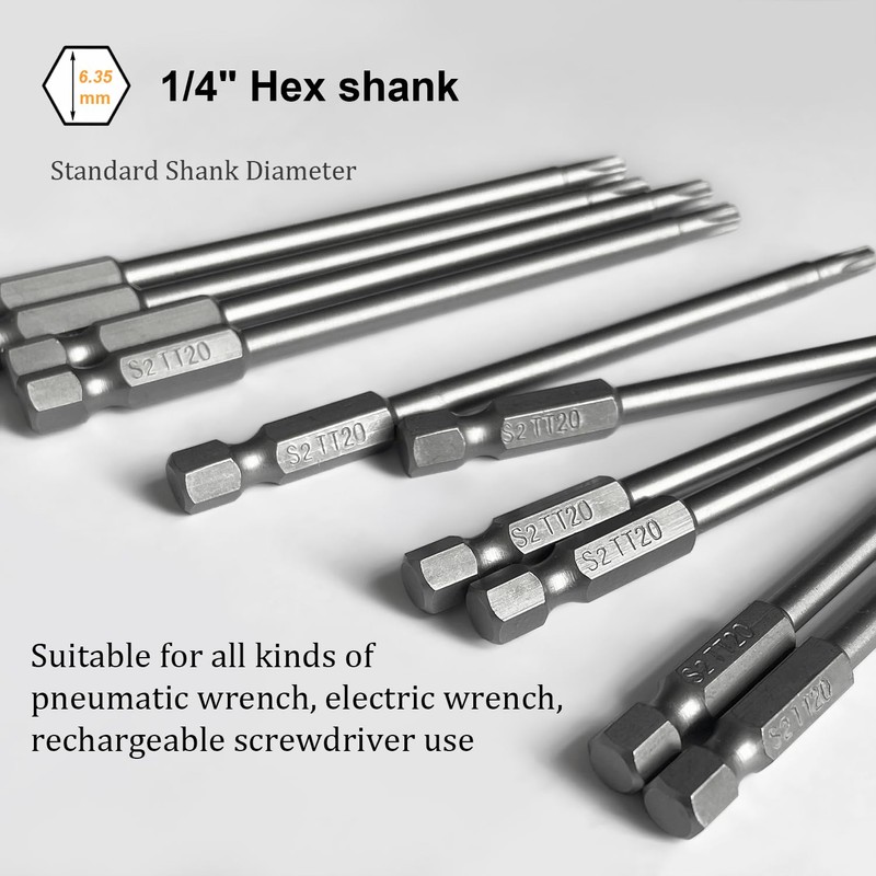 - High-Quality Material: Made of high-quality S2 alloy steel, this torx bits set is heat-treated to HRC58°-60° for excellent hardness and torque, ensuring its long-lasting durability, and providing tamper-proof protection for your devices and equipment.