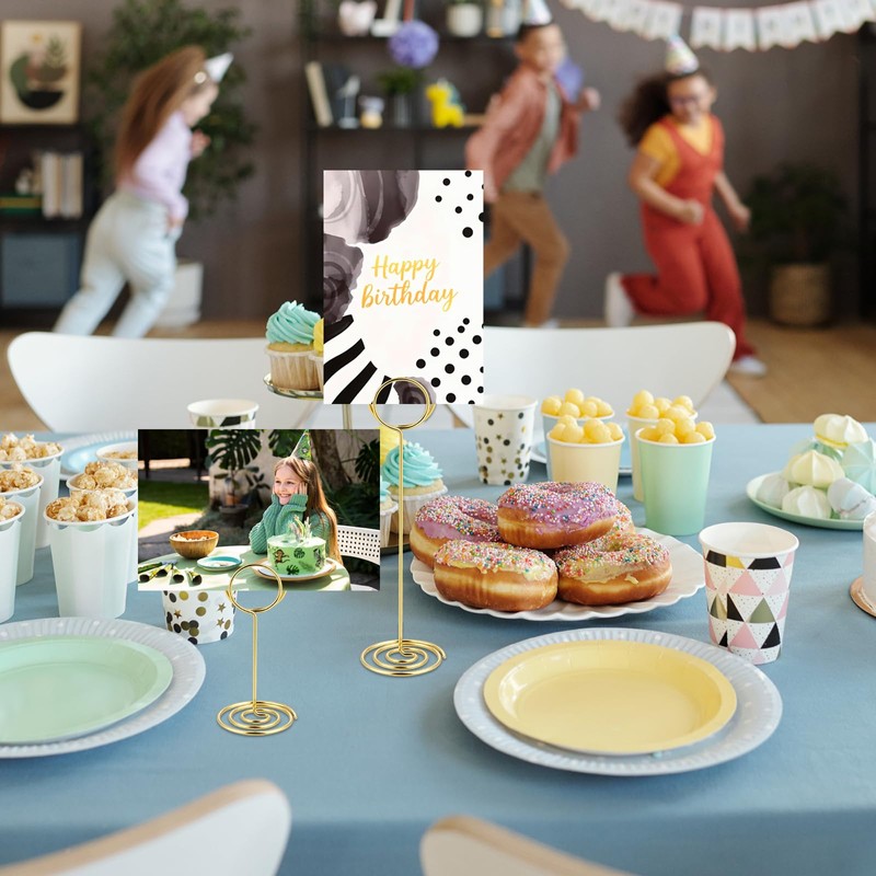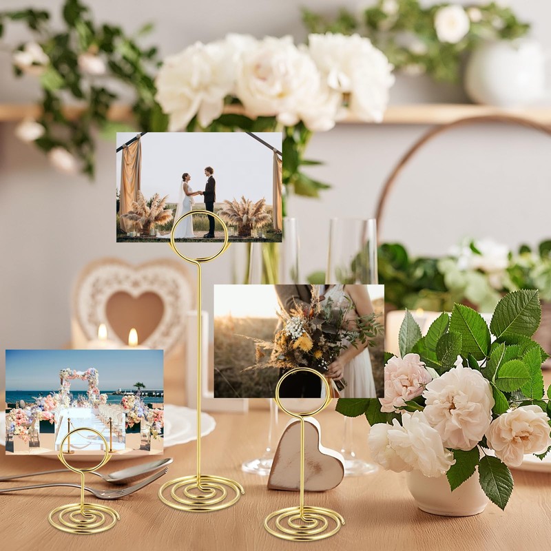 • 【Elegant Design】The table number holders feature a smooth spiral design, the table picture holders come with a polished gold finish, and the picture centerpieces for table add a touch of sophistication to any event decor