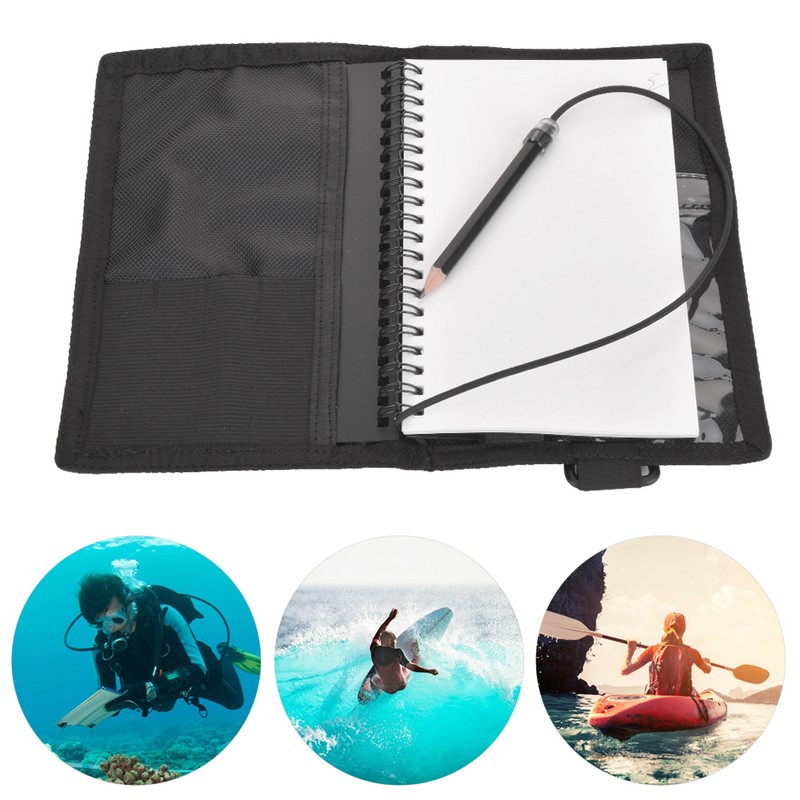 1、The compact design can fit into the BCD pocket, can also be suspended. 2、PU coating and nylon cloth wear resistant outer cover, can effectively protect inner pages. 3、Erasable inner pages and pencils are replaceable, practical and convenient. 4、Making it suitable for taking notes underwater, effectively avoid falling into water. 5、The elastic bookmark allows you marking a place for quick reference.