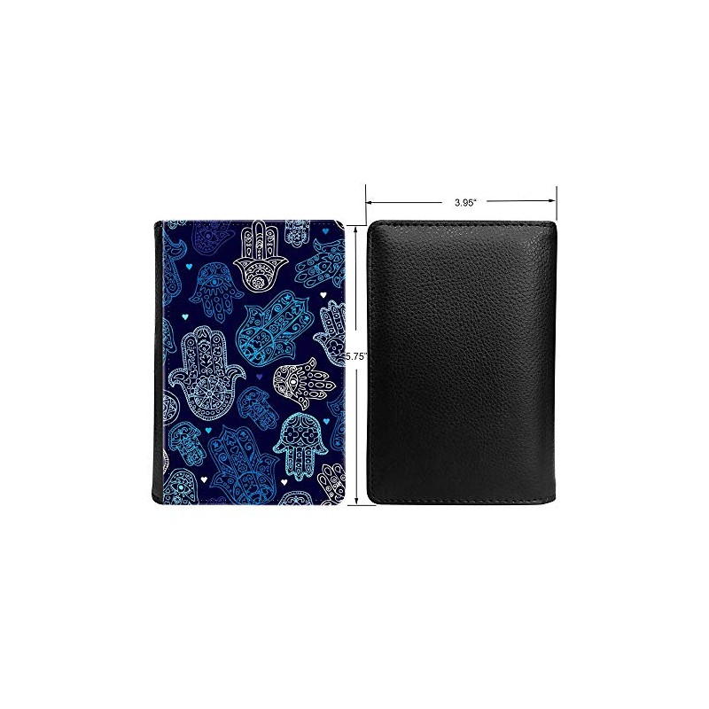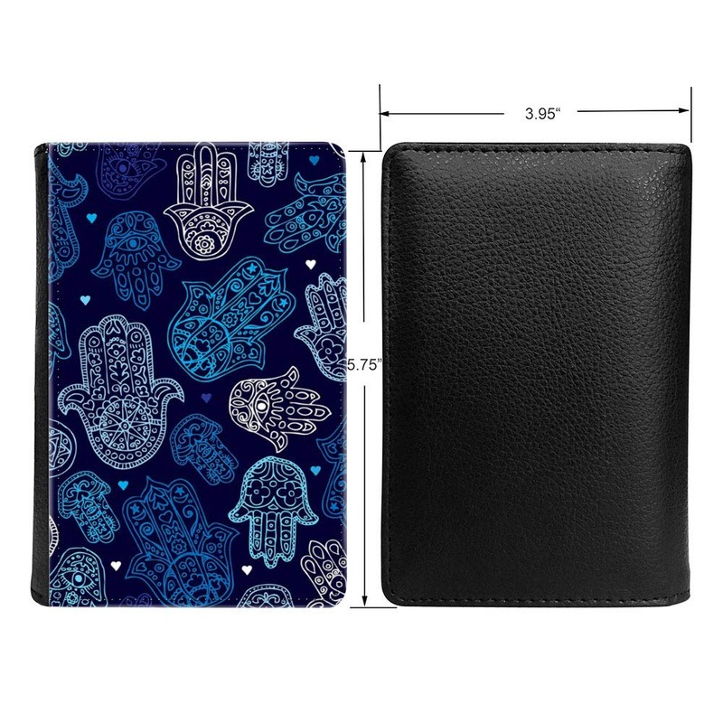PU Leather Passport Holder Travel Wallet RFID Blocking Card Case Cover With Unique Pattern (Hamsa hand pattern £, Black, Rfid Wallet