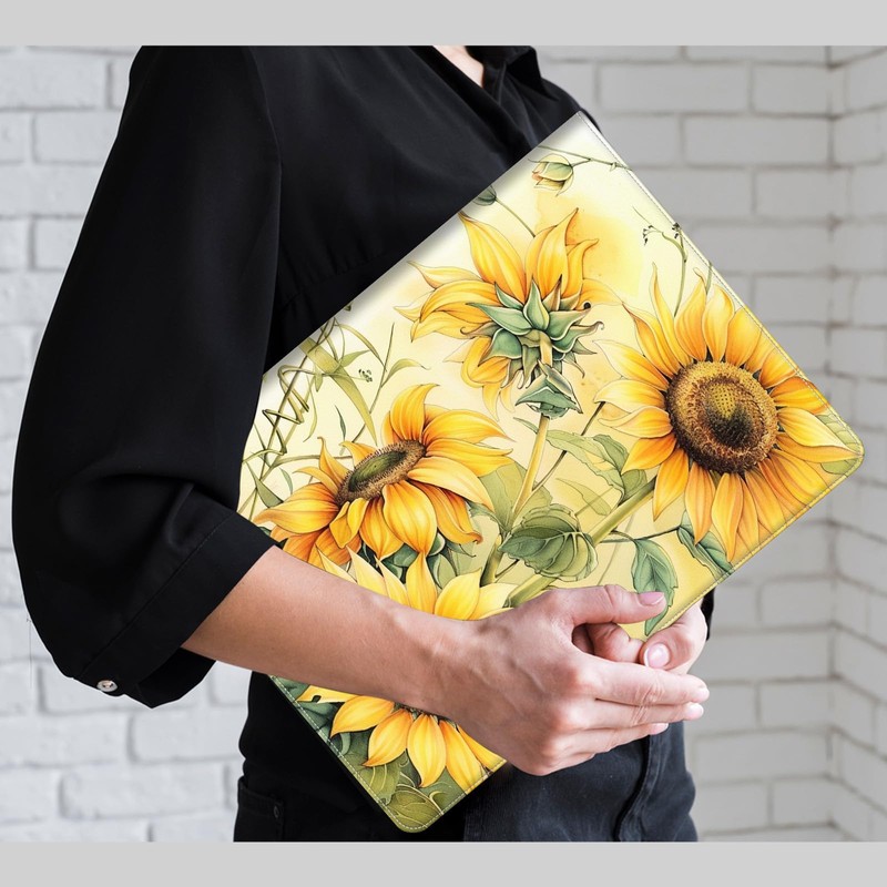 PU Leather Portfolio Women, Resume Portfolio Folder for Interview, Professional Business Organizer with Document Holder, Card Slots, and Pen Loop fit A4 Size Clipboard, Sunflower