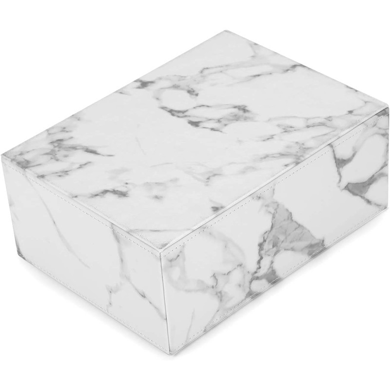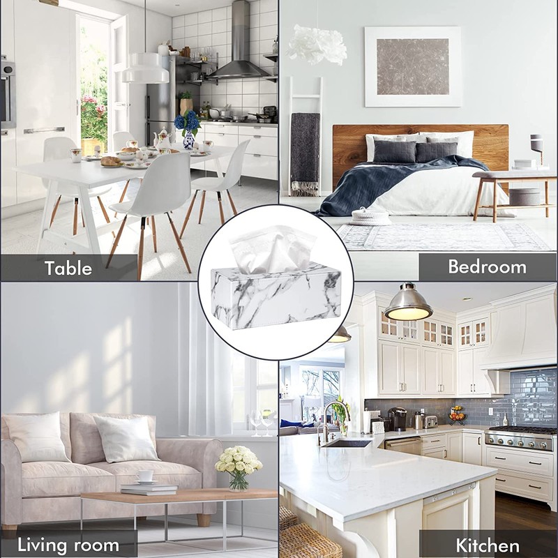 PU Leather Tissue Box Household Office Rectangular Tissue Box with Remote Storage Box - Elegant and Stylish Napkin Holder for Home Desk Storage Box, White Marble