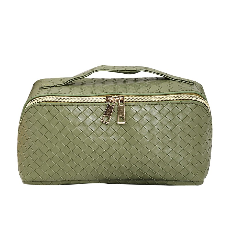 PU Makeup Bag, Large Capacity Travel Make Up Bag, Waterproof Portable Toiletry Bag with Divider and Handle Flat Lay Black Make up Organizer Travel Essentials (Green)