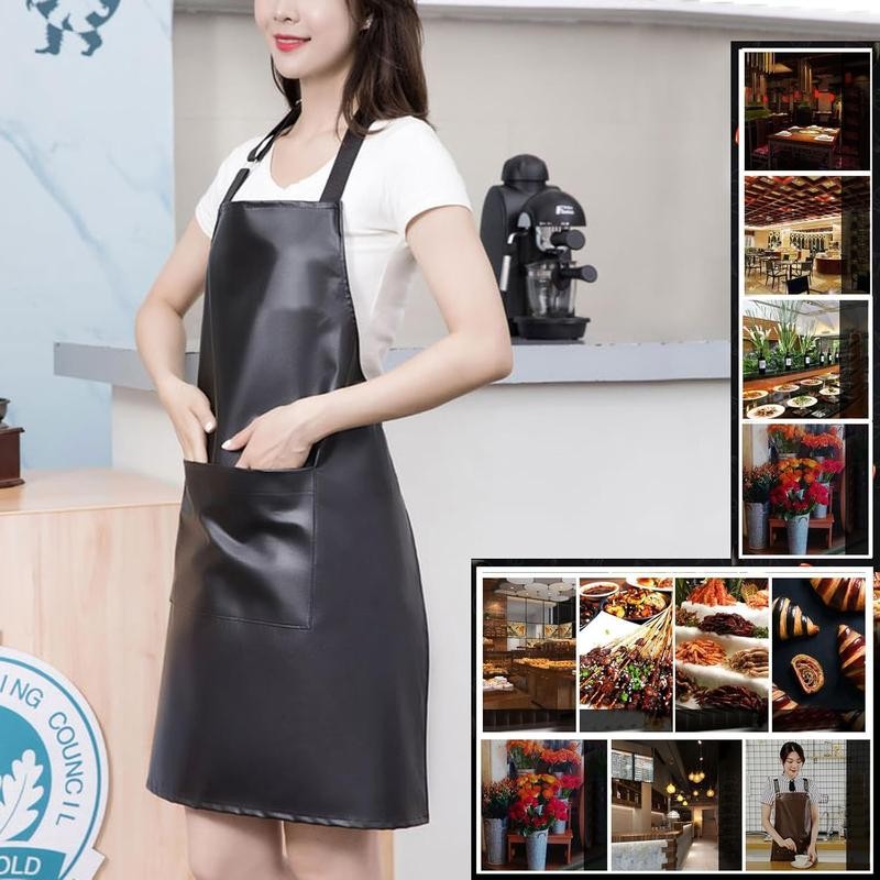 PU Waterproof Apron with One Big Pocket Adjustable Oil Proof Apron for Kitchen Dishwashing Cooking 29.92"x 26.77" - Color: Black&coffee-2packs