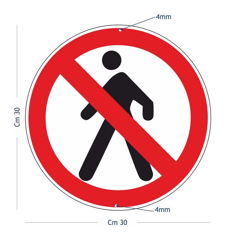 pubblimania Prohibited Pedestrian Access Road Signs Aluminium Round 3mm Thick Outdoor Diameter 30 (No Pedestrian Access)