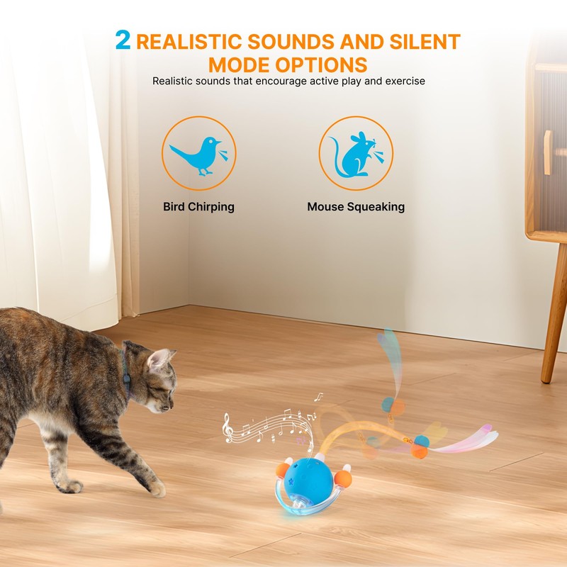 - CUSTOMIZABLE SOUND OPTIONS Double click the volume button to easily switch between mouse sounds, birdsong, or silence, depending on your cat's preference. The memory function remembers your last selection for a personalized experience without constant adjustments