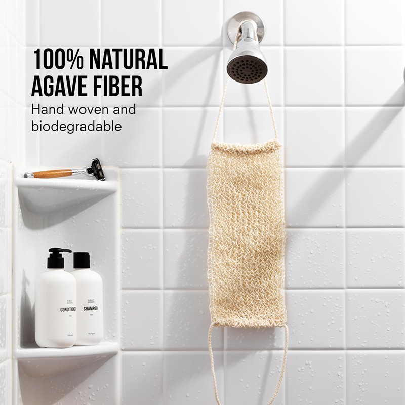 Public Goods Exfoliating Body Scrubber | Ayate Bath Strip for Shower | Back Scrubber Made with Natural Agave Fibers for Gentle Exfoliation | Plant-Based, Eco Friendly Loofah Alternative | 1 Count