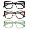 - SET OF 3 OVERSIZED READER: 3 Pack Oversized cat eye reading glasses Containing three trendy and versatile frame colors, black, brown tortoiseshell, and green color. suitable for all kinds of facial women forms, Multiple colors Readers Always Have a Stylish Look and Clear Vision When women Need It, giving your eyes all day reading protection. cat eye big frame glasses are very fashionable and cute. these full-rim square reading glasses are the best choice for you.