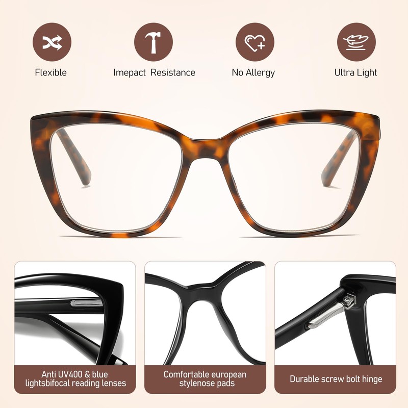FEATURES 100% brand and high-quality reading glasses for women trending Anti glare blue light blocking computer readers, protect your eyes Sturdy and durable spring Hinge, comfortable fit Fashion oversize reading glasses for women make you to be better