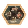 Material: wood, acrylic Size: 9.96*8.66*2.08 inches. Color: original wood color. Holds 4 pucks