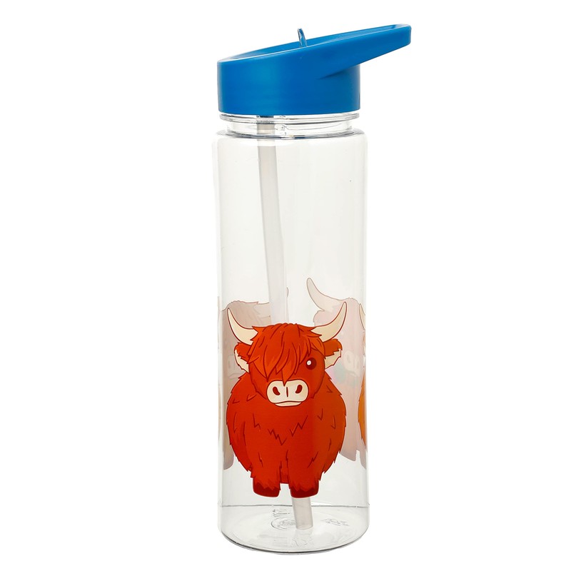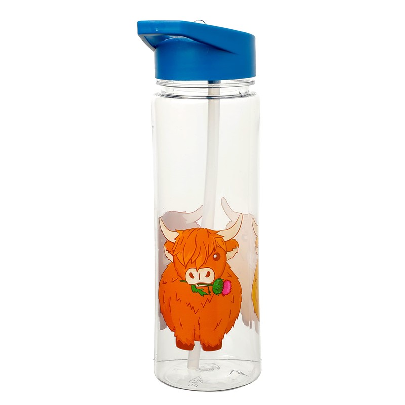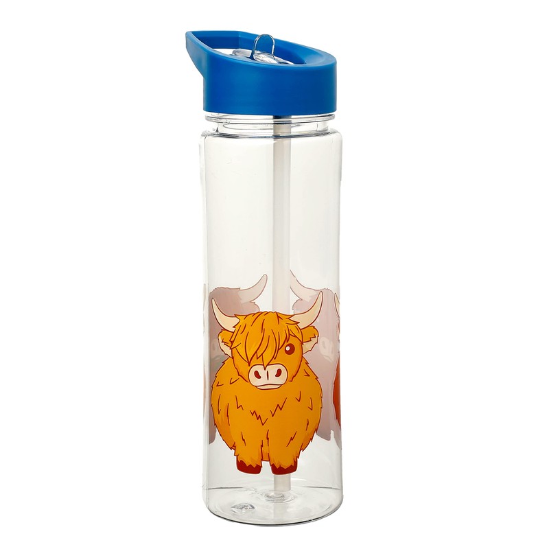 Puckator Highland Coo Cow - Kids Drinks Bottle With Flip Straw - Reusable Water Bottle For Girls And Boys With A Carry Handle - Bpa Free - For School Nursery - Cute Cow Design - Pp 550ml