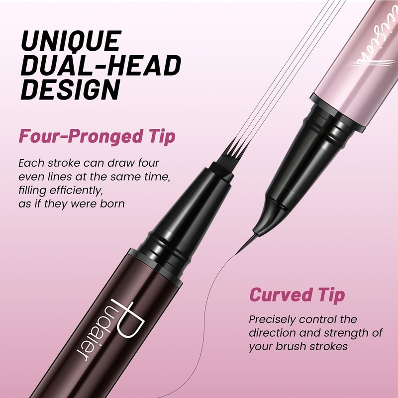 - 2-in-1 Eyebrow and Eyeliner Pencil: This dual-ended eyebrow pencil has 4 fork tips on one end, which can easily outline a natural 3D eyebrow, and the other end has a curved eyeliner pencil, which can perfectly fit the eye shape and draw a smooth, delicate eyeliner;