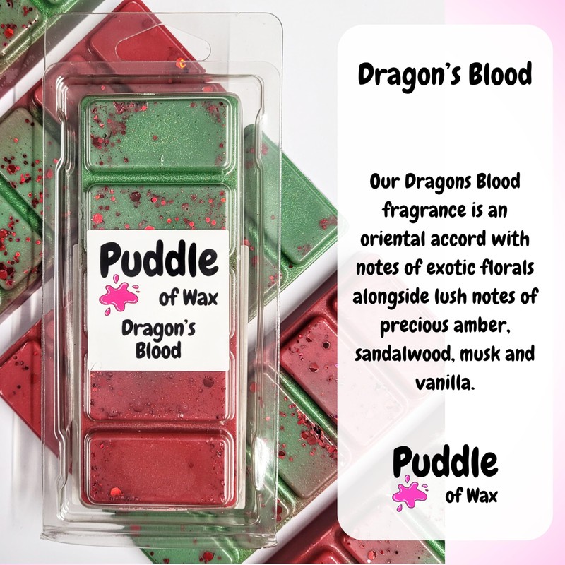 Puddle of Wax - Dragons Blood Soy Wax Melt Snap Bar - 50g - Woody Scent - Vegan Friendly - Made in the UK