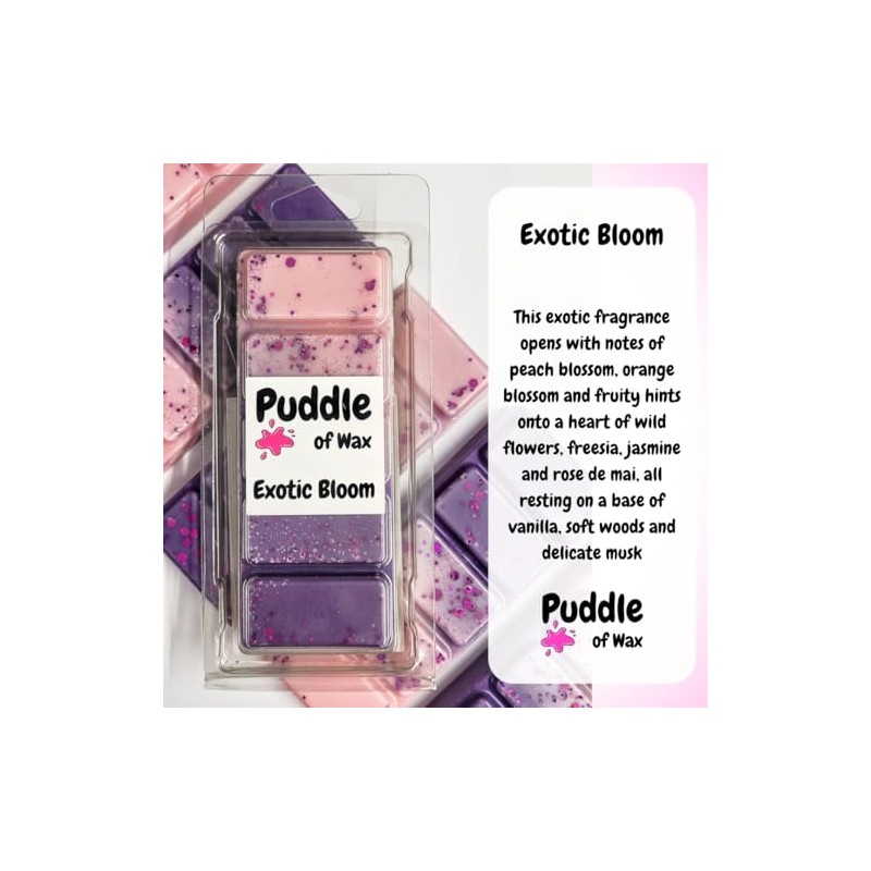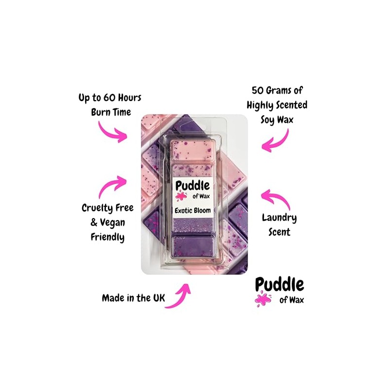 Puddle of Wax - Exotic Bloom Soy Wax Melt Snap Bar - 50g - Laundry Scent - Vegan Friendly - Made in the UK