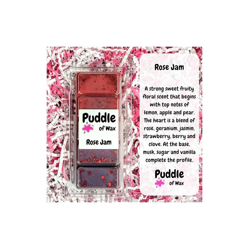 Puddle of Wax - Rose Jam Soy Wax Melt Snap Bar - 50g - Floral Scent - Vegan Friendly - Made in the UK