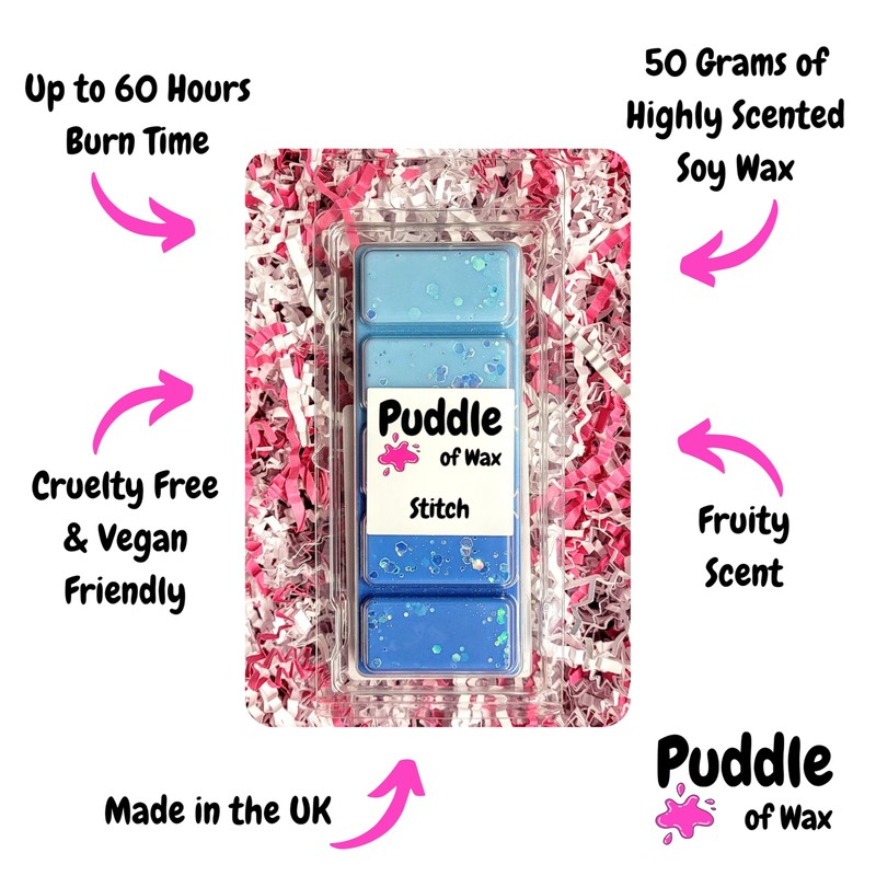 Puddle of Wax - Stitch Soy Wax Melt Snap Bar - 50g - Fruity Scent - Vegan Friendly - Made in the UK