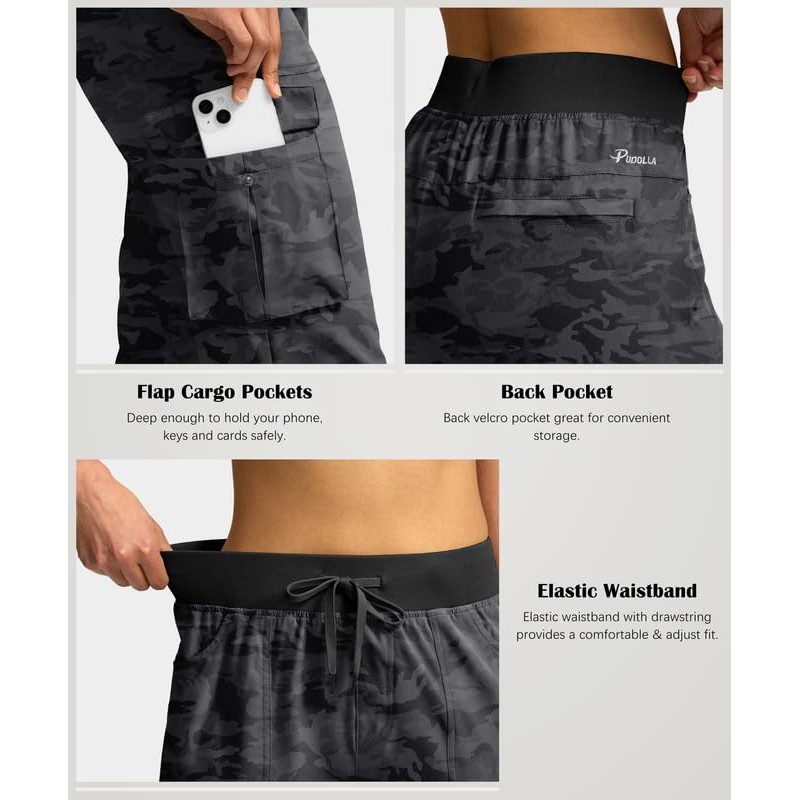 Pudolla Women's Cargo Capri Pants Lightweight Quick Dry Hiking Pants Summer Travel Casual Capris with 5 Pockets (Black Camo Medium)