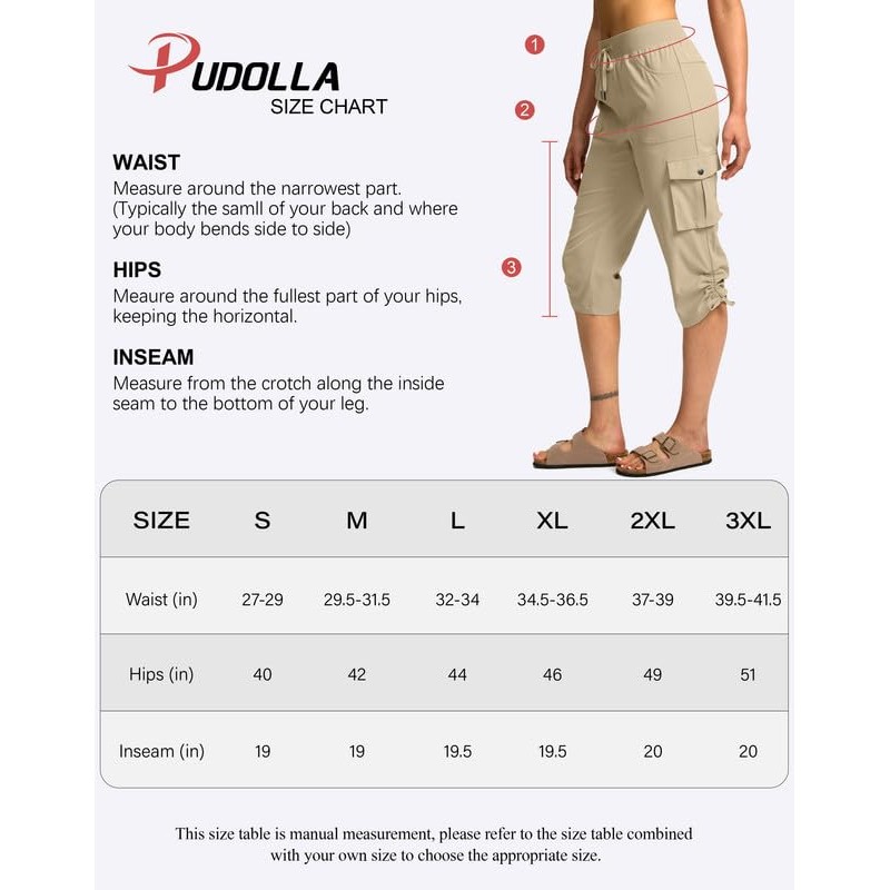 - Cargo Capri Pants: The capris have 5 pockets, two front hand pockets, two flap cargo pockets and one back pocket make it easy to secure valuables while traveling or hiking.