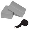 PUDSIRN Yoga Blocks Set, High Density EVA Foam Blocks, Non-Slip with Yoga Strap, Metal D-Ring to Improve Balance and Flexibility for Yoga, Pilates, Meditation, Grey, 2 Pieces
