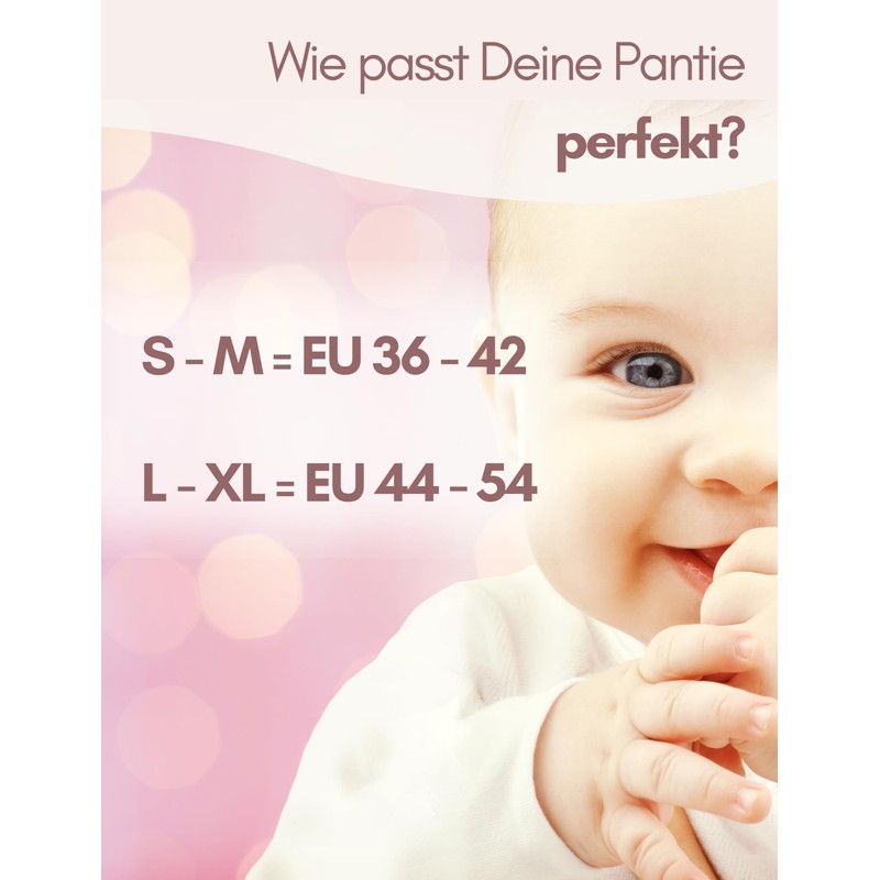 - Comfortable leg cut – with our postpartum underwear, we attach great importance to comfort. That's why we have adapted our sizes to the woman in the postpartum - and not the other way around.