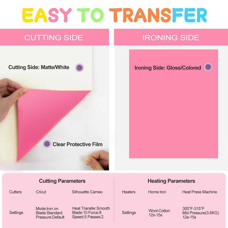 - ✂️【Easy to Cut & Weed & Transfer】: Our puff HTV Heat transfer 3d pink vinyl is easy-to-cut, and fully compatible with all kinds of craft cutting knife or machines. Simply use a household irons to heat this puff vinyl to complete the work. Easy weed color printable HTV Vinyl sheets allowing you to weed and transfer very easily, even the most complicated designs can be transferred perfectly to work area.