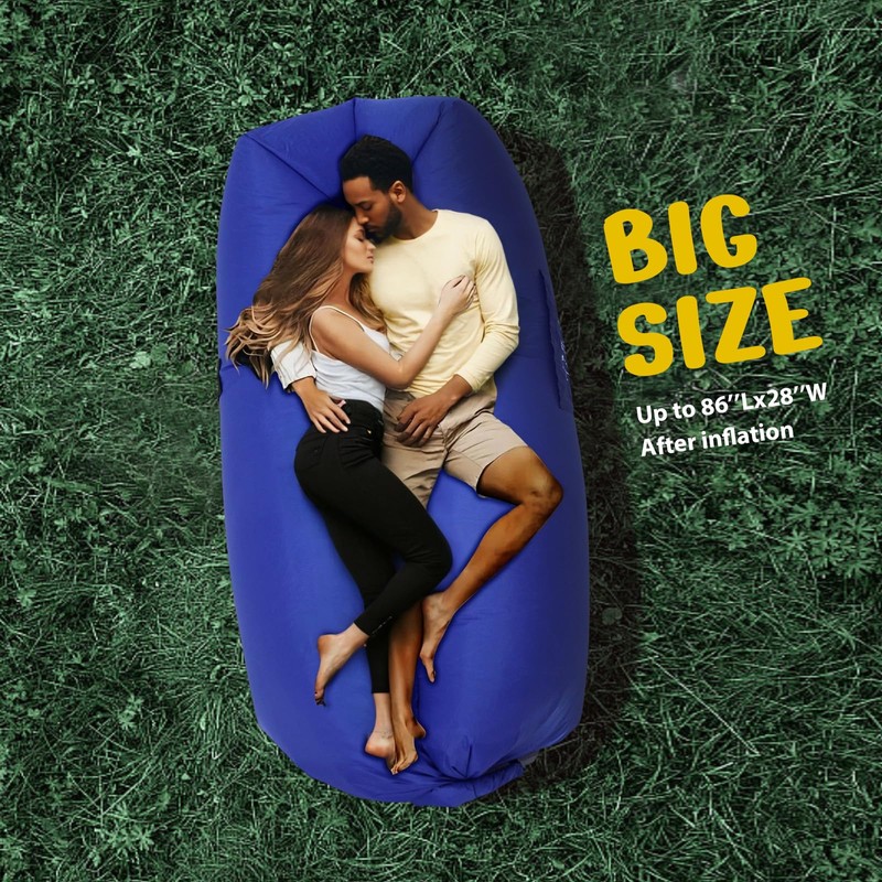 - 𝙀𝘼𝙎𝙔 𝙄𝙉𝙁𝙇𝘼𝙏𝙄𝙊𝙉: No pump required for PuffinTrip air lounger. Run against the wind, fill up the air and you can start enjoying it. Remember to close the pocket as quickly as possible after you collect the air. After inflation, the size will be up to 86’’Lx28’’Wx20’’H
