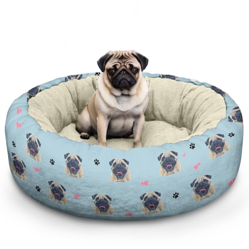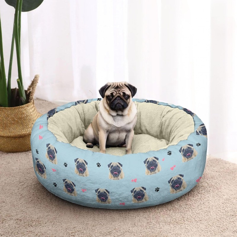 Pug Calming Round Bed Washable Dog Bed Donut Indoor
