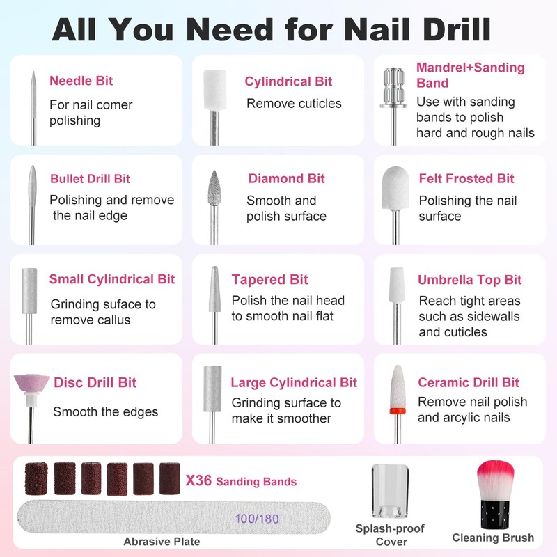 - VERSATILE FUNCTIONALITY: Includes 7+ specialised bits suitable for gel, acrylic, and dip nail applications, offering multiple speed settings
