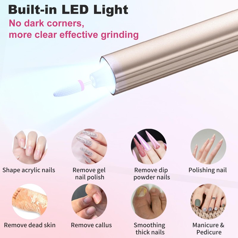 - CORDLESS DESIGN: Rechargeable electric nail drill with built-in UV LED light for professional-quality manicures and pedicures at home or in the salon