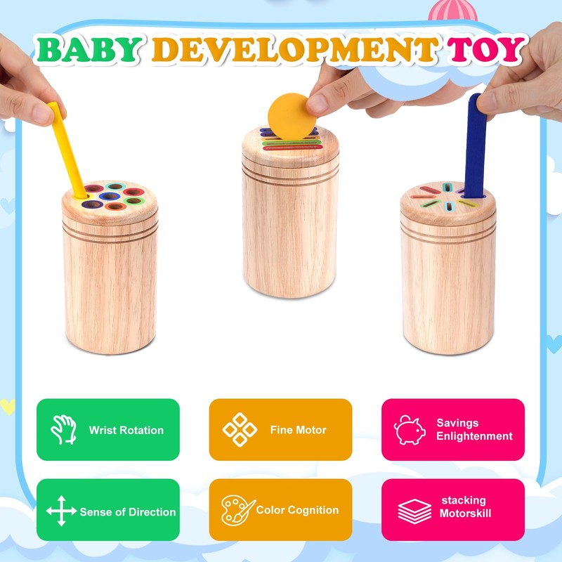 - An ideal sensory toy for little explorers. The wooden toy from 1 year old promotes hand-eye coordination and sense of direction when children guide the sticks through the holes - perfect as a busy car ride children.