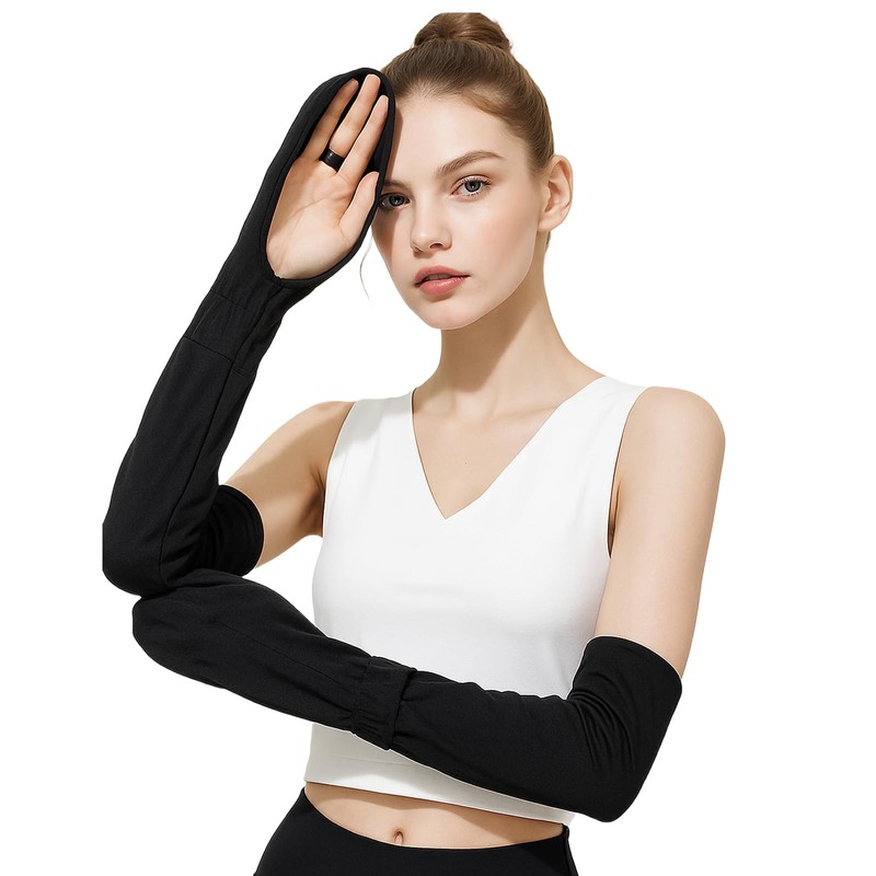 - 【超ロング丈で指先から二の腕までしっかりカバー】夏の日差しが強い日も大活躍。総丈54cmの超ロング設計で、指先から二の腕まで広範囲をカバー。半袖やノースリーブを着る夏でも紫外線対策がばっちり。ドライブや通勤、スポーツ観戦など屋外のシーンにおすすめです。総丈54cm丈で、長くて、夏場は袖が短い服を着いても指先から腕まで日焼けからガードできます。