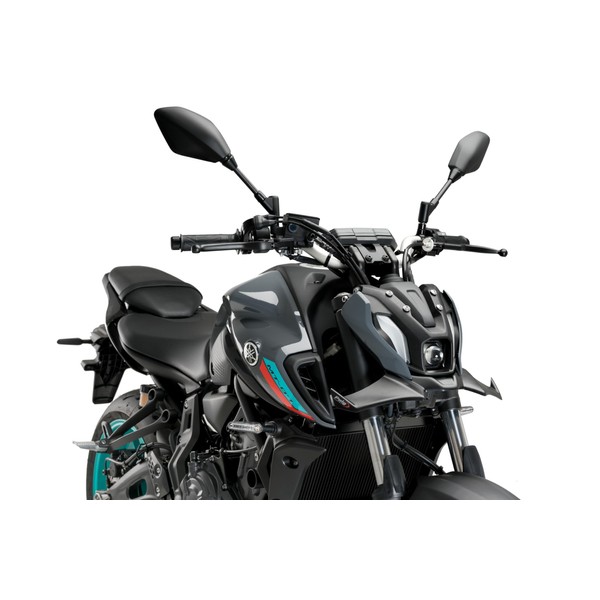 • In terms of aerodynamics, the Puig Naked front spoiler directs the air that reaches the radiator forward and thanks to its shapes provides almost 2 kg of downforce on the front wheel, which in turn provides an anti-wheelie effect, an anti-mould effect (more stability at high speeds), more serenity when braking and more stability when changing direction