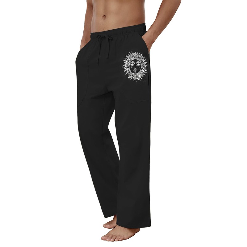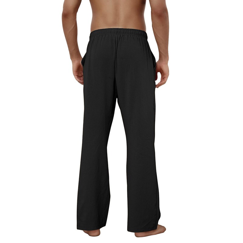 Puimentiua Cotton Linen Pants Men, Summer Beach Pants Loose Fit with Elastic Waist Drawstring Black