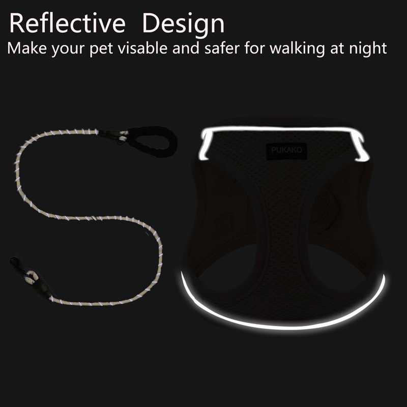- 【Safety & Reflective】The puppy harness and leash set features high-quality reflective strips and four reflective bands on the sides for enhanced visibility and safety. The vest-style design distributes pulling pressure evenly across the shoulders and chest, applying uniform force and reducing the risk of chafing or choking.
