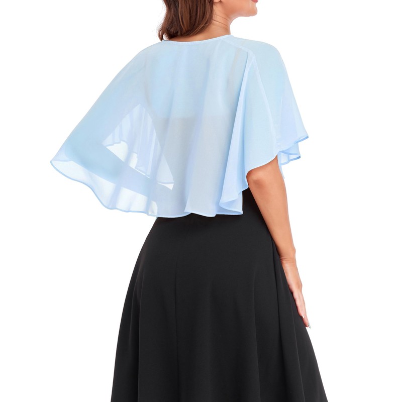 Pukguro Light Blue Shawl Wraps for Women Chiffon Sheer Capelets Shawls and Wraps for Evening Dresses