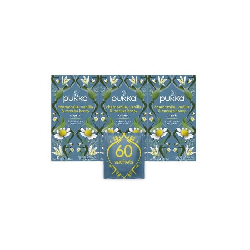 Pukka Organic Tea Bags, Chamomile, Vanilla and Manuka Honey Herbal Tea, Perfect for Moments of Calm, 20 Count (Pack of 3) 60 Tea Bags