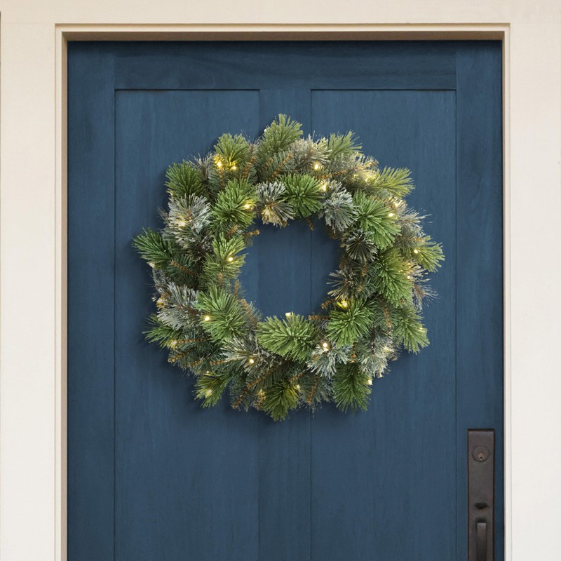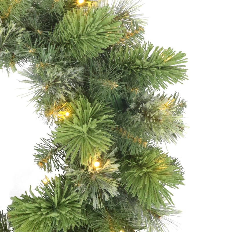 • 24" PRE-LIT BATTERY-OPERATED ON/OFF TIMER CHRISTMAS WREATH: Comes with 35 LED warm white lights, providing a soft, inviting glow. The lights are already integrated, so there is no need for extra installation and comes with an 8-16 hour on/off timer for your convenience. Please note: 3 AA batteries are not included with Puleo International 24" Pre-Lit Artificial Oklahoma Pine Wreath with LED Lights.
