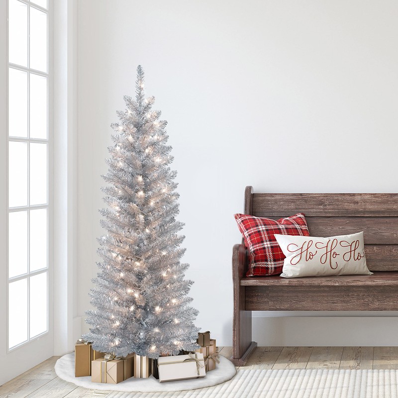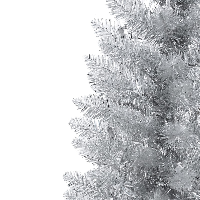 - 4.5 FT ELEGANT CHRISTMAS TREE: 170 silver tinsel pine needle branches create the natural look of a colorful Christmas tree for a timeless holiday accessory
